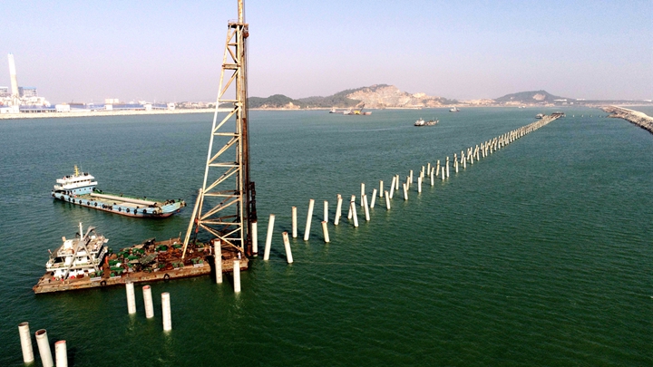 12月8日上午,隨著作業(yè)船只的最后一次夯擊,茂名港博賀新港區(qū)東區(qū)油品碼頭工程水域公共管廊鋼管樁沉樁分項施工圓滿完工。至此,東區(qū)油品碼頭水域公共管廊樁基工程全面完工,比原計劃工期提前2個月,為實施上部結(jié)構(gòu)施工創(chuàng)造了前提條件。