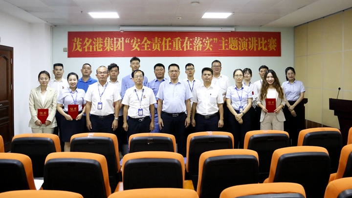 楊超燦對(duì)本次“安全責(zé)任重在落實(shí)”演講比賽給予充分肯定。他表示,本次比賽參與面廣,吸引了集團(tuán)辦公室、財(cái)務(wù)部、投資發(fā)展部、工程管理部以及各下屬企業(yè)的的選手參加,擴(kuò)大了安全宣講的影響力,充分體現(xiàn)了“安全工作人人有責(zé)”;各位選手演講時(shí)神抖擻,內(nèi)容切合工作實(shí)際,言之有物,充分展現(xiàn)了茂名港人昂揚(yáng)向上的良好精神風(fēng)貌。他強(qiáng)調(diào),今年是集團(tuán)重點(diǎn)項(xiàng)目建設(shè)的關(guān)鍵之年,我們要堅(jiān)定信心,認(rèn)真學(xué)習(xí)本次演講主題“安全責(zé)任重在落實(shí)”的內(nèi)涵,把安全責(zé)任落實(shí)到每個(gè)環(huán)節(jié)、每個(gè)崗位、每個(gè)人,做到“守土有責(zé)、守土負(fù)責(zé)、守土盡責(zé)”,助力集團(tuán)生產(chǎn)運(yùn)營(yíng)、項(xiàng)目建設(shè)、疫情防控等各項(xiàng)工作取得成效,夯實(shí)本質(zhì)安全基礎(chǔ),推動(dòng)集團(tuán)安全生產(chǎn)形勢(shì)持續(xù)穩(wěn)定向好。 評(píng)委們與參賽選手們合影 ↓↓