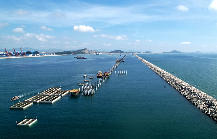 自今年7月11日安裝首個(gè)沉箱以來(lái),茂名港集團(tuán)東區(qū)油品碼頭項(xiàng)目部與各參建單位圍繞沉箱安裝這一碼頭建設(shè)的“大”難題,時(shí)刻跟蹤施工水域氣象動(dòng)態(tài),精心收集整理潮位數(shù)據(jù),克服過(guò)往漁船頻繁及涌浪頻發(fā)等不利因素,高效合理利用有效潮作業(yè)工期,積極統(tǒng)籌,對(duì)每個(gè)沉箱安裝都制定了詳細(xì)的作業(yè)計(jì)劃和預(yù)案,安全高效地將12個(gè)沉箱全部安裝完成! 沉箱全部安裝完成是東區(qū)油品碼頭建設(shè)的重要里程碑,標(biāo)志著項(xiàng)目建設(shè)邁出最堅(jiān)實(shí)一步,也為東區(qū)油品碼頭高質(zhì)量建設(shè)奠定堅(jiān)實(shí)的基礎(chǔ)。(鐘春林) |