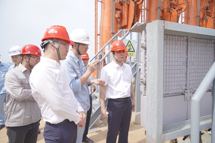 上午,肖炳璋一行深入化工碼頭和化工倉儲現(xiàn)場一線參觀,了解化工碼頭以及化工倉儲項目投產(chǎn)準備工作的具體情況,聽取長興石化公司負責人以及化工倉儲項目部管理人員的匯報。肖炳璋對長興石化公司投產(chǎn)準備工作取得的進展給予了充分的肯定,他指出,一是化工碼頭即將投產(chǎn)運營,長興石化公司人員要提前到位,布置工作要全盤考慮,走在前面。二是工作要落實細節(jié),設(shè)備管理注重細節(jié),對于重點設(shè)備要每周檢查,發(fā)現(xiàn)問題及時處理,責任落實到位。三是要落實現(xiàn)場作業(yè)安全問題。設(shè)備要及時維護,關(guān)注各類跑冒滴漏問題,確保碼頭和庫區(qū)具備安全生產(chǎn)的能力。