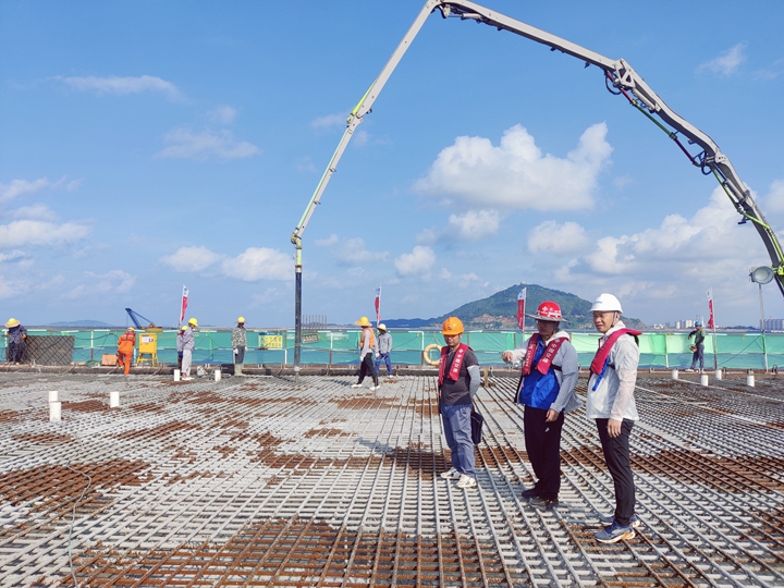 面對復(fù)雜的項目質(zhì)量問題,他從不退縮。他總是冷靜思考,運用自己豐富的經(jīng)驗和專業(yè)知識,迅速找到問題的根源,并制定出切實可行的解決方案。6月18日,30萬噸級原油碼頭項目現(xiàn)場澆筑長48米、寬37米、高2.5米工作樓墩臺大體積混凝土施工,現(xiàn)場巡視和檢查時,他發(fā)現(xiàn)施工單位未按照審批實施方案進(jìn)行施工,混凝土表觀質(zhì)量出現(xiàn)裂紋和施工冷縫現(xiàn)象。當(dāng)即,叫來施工技術(shù)人員和專監(jiān),進(jìn)行查找和分析原因,糾正施工工藝和改進(jìn)措施,同時總結(jié)經(jīng)驗,優(yōu)化技術(shù),既解決了當(dāng)前的問題,也為后續(xù)混凝土澆筑提供保障。他堅信,質(zhì)量是項目的生命,任何一點馬虎都可能導(dǎo)致不可挽回的后果。 為了確保項目的高質(zhì)量推進(jìn),他不僅注重現(xiàn)場的監(jiān)督和檢查,還積極推動質(zhì)量管理體系的建設(shè)和完善,對重大與典型施工進(jìn)行全程監(jiān)督管理。他組織培訓(xùn),向團(tuán)隊成員傳授質(zhì)量管理的方法和技巧,培養(yǎng)和提高大家的質(zhì)量意識,讓質(zhì)量理念深入人心。