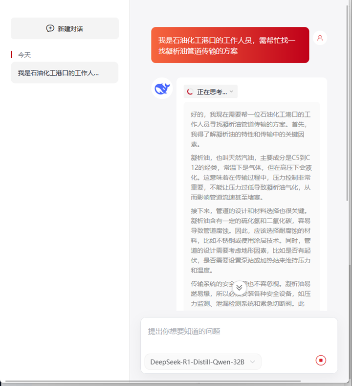 近日,茂名港集團(tuán)的綜合調(diào)度業(yè)務(wù)系統(tǒng)成功集成Deepseek大模型,標(biāo)志著智慧港口建設(shè)邁出了重要一步。此次集成不僅提升了港口業(yè)務(wù)的可視化與智能化水平,還通過創(chuàng)新的技術(shù)方案,確保了港口生產(chǎn)數(shù)據(jù)的安全性與獨(dú)立性。 AI賦能港口調(diào)度可視化大屏 Deepseek大模型作為國內(nèi)頂尖的人工智能技術(shù),具備強(qiáng)大的自然語言處理、數(shù)據(jù)分析與互聯(lián)網(wǎng)搜索能力。此次集成將Deepseek的大模型接口嵌入綜合調(diào)度業(yè)務(wù)系統(tǒng),通過懸浮按鈕“港航智匯”,一鍵喚醒AI大腦,直連Deepseek,實(shí)現(xiàn)大屏端業(yè)務(wù)全場景智能對話。這一創(chuàng)新設(shè)計(jì)使港口調(diào)度人員能夠?qū)崟r獲取港航領(lǐng)域的精準(zhǔn)業(yè)務(wù)搜索、智能咨詢與深度分析服務(wù),顯著提升了工作效率與決策能力,為港口調(diào)度業(yè)務(wù)的智能化升級注入了全新動力。并且,“港航智匯”可自動保存歷史搜索記錄,方便用戶隨時查看和回溯,提升操作便捷性與工作效率。