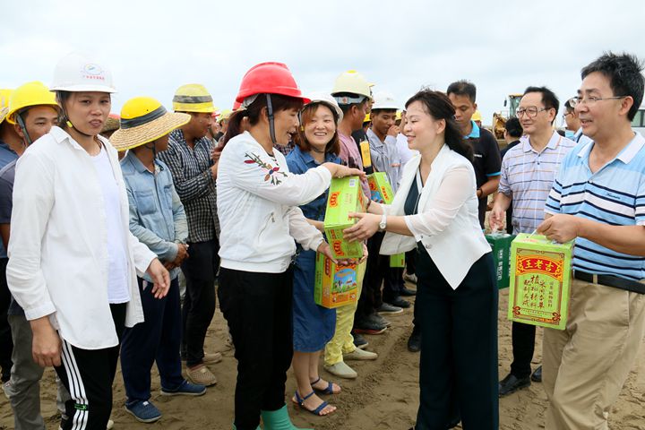 黃奕奕一行深入了解茂名港集團(tuán)常態(tài)化疫情防控、項(xiàng)目建設(shè)情況和職工防暑降溫工作,向高溫期間堅(jiān)守在一線的職工表示慰問(wèn),感謝他們?yōu)槊ㄔO(shè)和發(fā)展揮灑的汗水和心血。黃奕奕指出,開(kāi)展向一線職工“夏日送清涼”活動(dòng),是工會(huì)組織關(guān)心職工生活,保障群眾安全生產(chǎn)工作的重要舉措,也是工會(huì)組織作為職工“娘家人”的職責(zé)所在。她要求,茂名港集團(tuán)要積極行動(dòng),發(fā)揮好業(yè)主單位統(tǒng)籌協(xié)調(diào)職能,強(qiáng)化參建各方協(xié)作,主動(dòng)做好職工的降溫防暑工作,認(rèn)真落實(shí)各項(xiàng)勞動(dòng)保護(hù)措施,切實(shí)關(guān)心廣大職工的身心健康,同時(shí)做好防控疫情,做到防疫降溫并舉。參建各單位工會(huì)要關(guān)心一線職工的生產(chǎn)、生活,確保職工工作安全,生活安心。她希望,各一線職工要立足本職崗位,發(fā)揚(yáng)新時(shí)代工匠精神,鑄造濱海新區(qū)精品工程,為茂名經(jīng)濟(jì)發(fā)展提供更大助力。