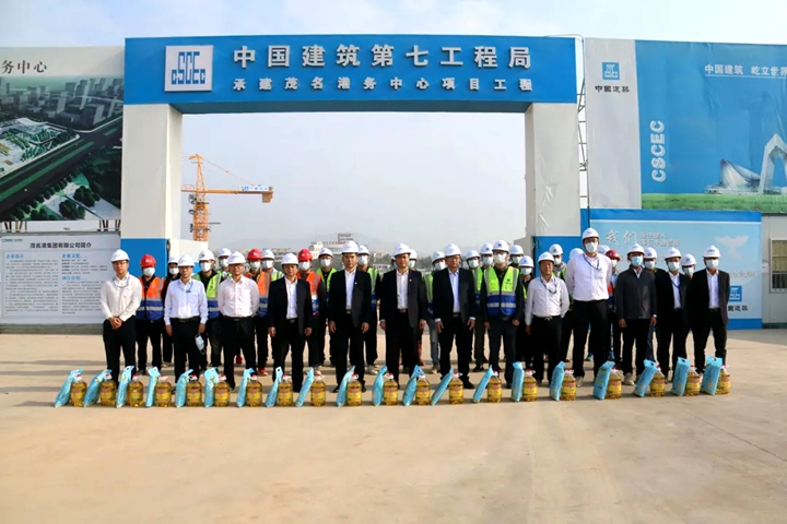 1月26日,新春佳節(jié)來臨之際,根據(jù)集團黨委工作部署,茂名港集團黨委副書記、工會主席肖炳璋,集團副總裁楊超燦率隊對集團重點項目施工單位進行慰問,并為150天大會戰(zhàn)中表現(xiàn)突出的施工單位授牌表彰。