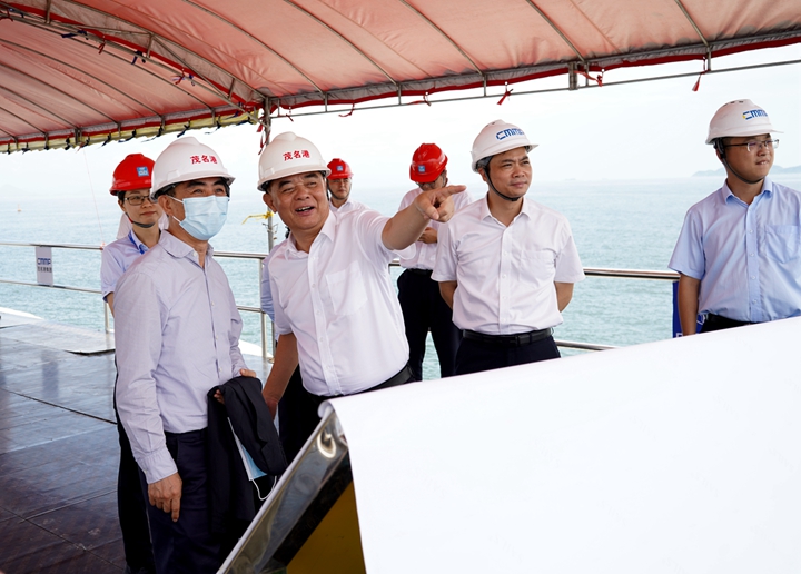 陳林夕一行深入到茂名港博賀新港區(qū),實地考察了茂名港博賀新港區(qū)各省市重點項目的推進情況?疾熘,陳林夕對博賀新港區(qū)宏大的總體規(guī)劃和蓬勃的發(fā)展態(tài)勢表示贊嘆。他表示,港口建設事關茂名市經濟建設的百年大計,茂名港集團作為市屬企業(yè)的“排頭兵”,發(fā)展前景十分廣闊,擁有較好的發(fā)展?jié)摿皡^(qū)位資源優(yōu)勢。他希望,以本次調研為契機,充分發(fā)揮國家開發(fā)銀行金融服務優(yōu)勢,以茂名港集團重點項目為抓手,建立緊密的合作關系,提供契合集團發(fā)展方向的創(chuàng)新金融服務,攜手茂名港集團實現互利共贏,共同推動茂名地區(qū)經濟發(fā)展。
