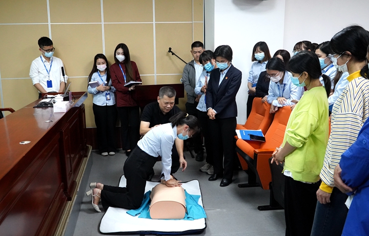 講座采用理論授課及實踐操作相結(jié)合的方式進行,梁宇強以生活中的案例為切入點,對創(chuàng)傷、中毒、溺水、心跳驟停、氣道異物的癥狀及急救技術(shù)作了詳細的講解,并鼓勵大家當(dāng)成為突發(fā)意外或傷病“第一目擊者”時,實施正確有效的急救方法,為傷病者提供第一時間的救助,贏得寶貴搶救機會的黃金時間。理論授課結(jié)束后,梁宇強以模擬橡膠人為器具,現(xiàn)場演示了正確的心肺按壓和人工呼吸方式,并指導(dǎo)職工們親自動手操作。本次講座深入淺出、寓教于樂、實操實練的宣講培訓(xùn)方式,極大激發(fā)了職工們的學(xué)習(xí)熱情,贏得了職工們的廣泛好評。